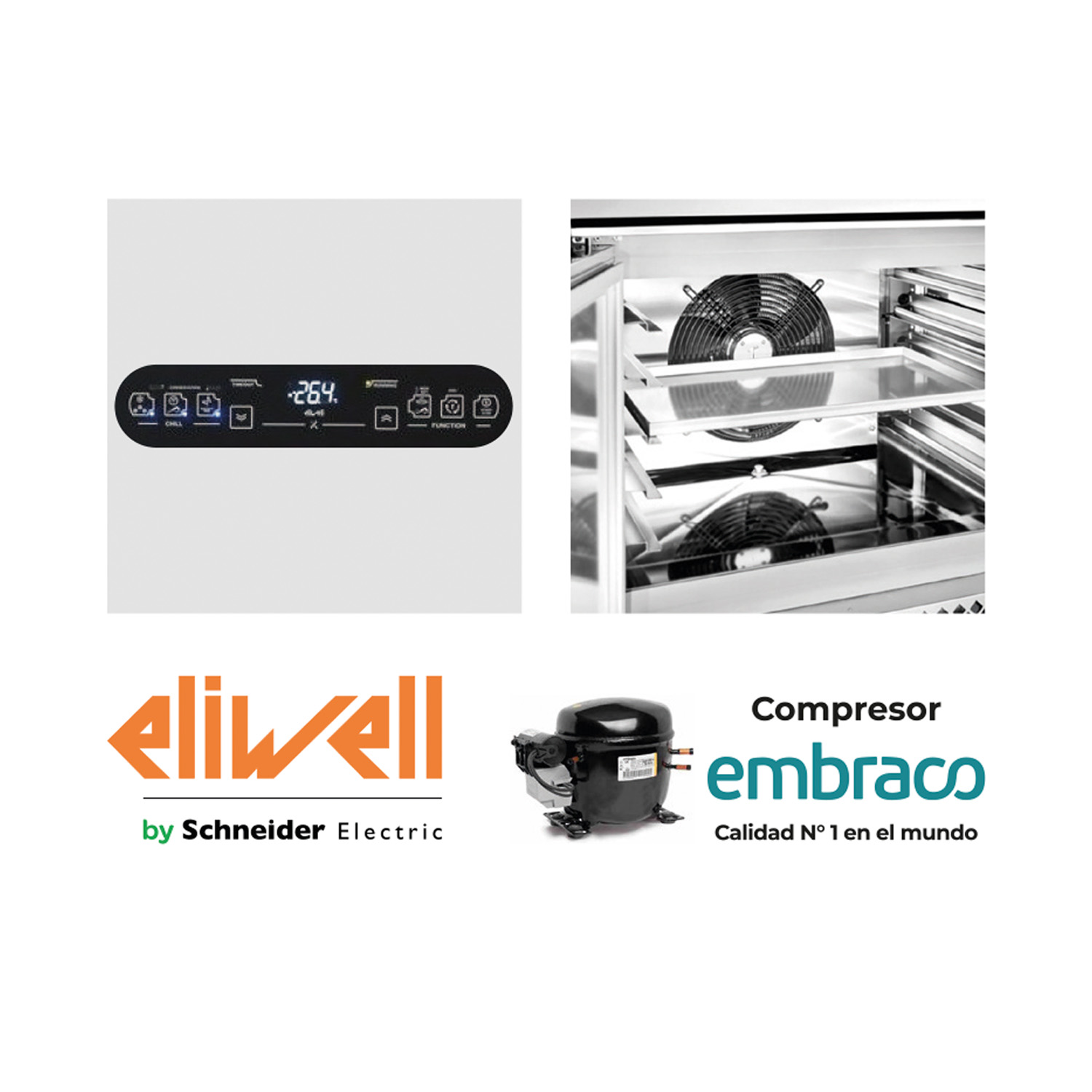 - Tiempo de abatimiento (congelación): 270 min (70 °C → –18 °C).