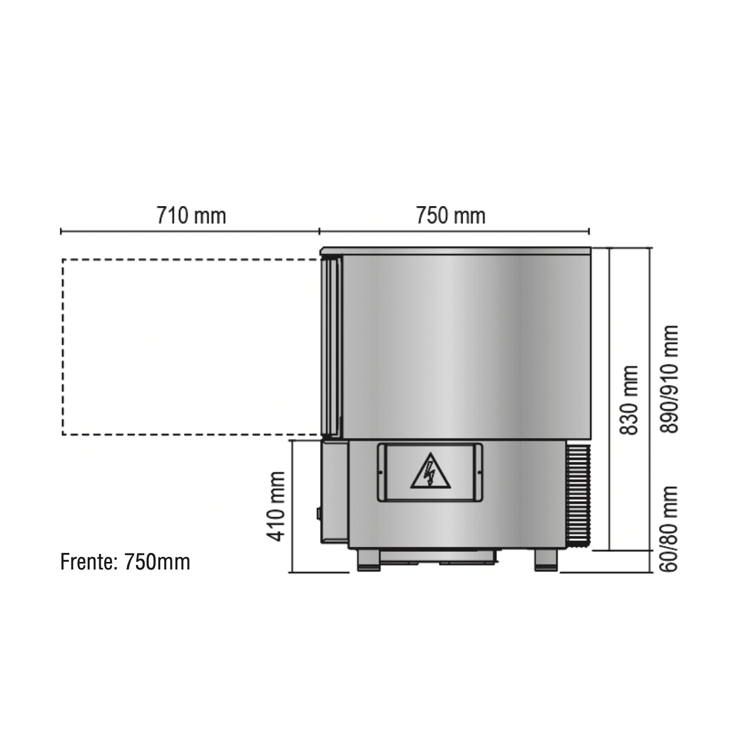 - Dimensiones: Frente 750 mm, altura aprox. 890–910 mm, profundidad 830 mm.