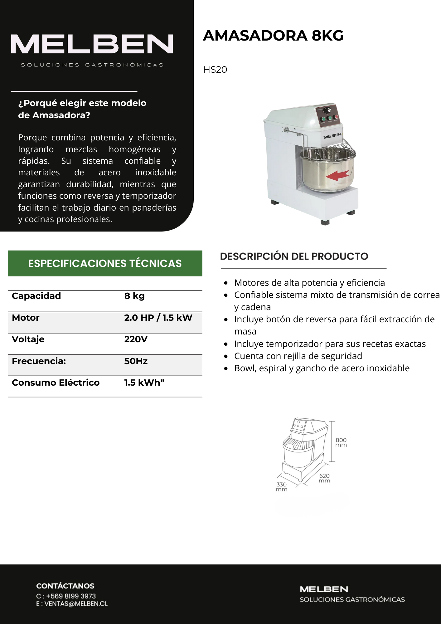 Ideal para panaderías, pastelerías y cocinas profesionales, donde se requiere trabajar con grandes volúmenes de masa y mantener la calidad en cada preparación.