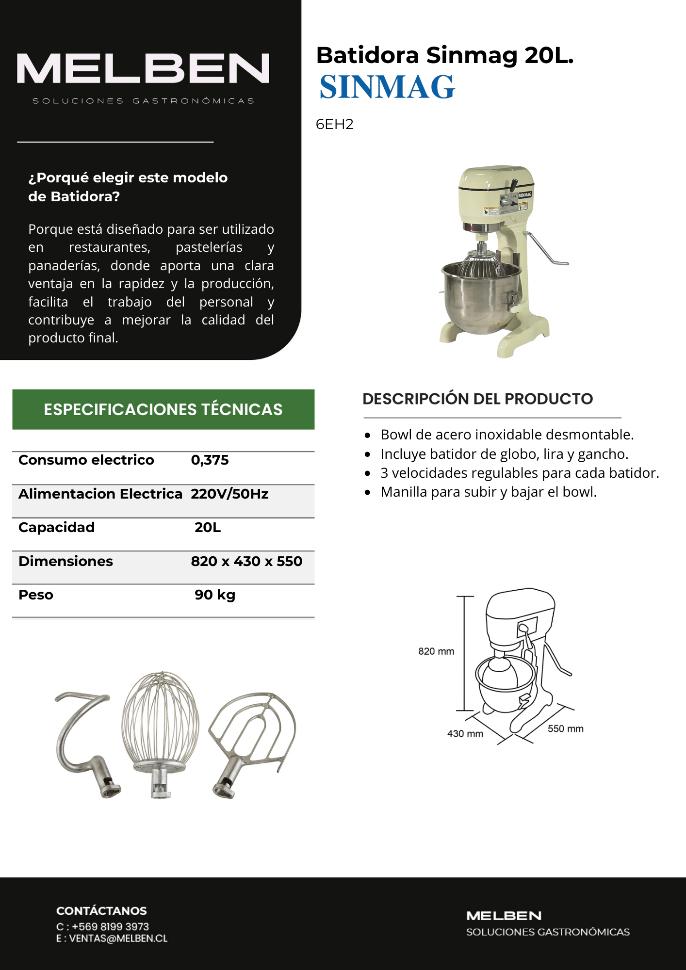 Porque ofrece un bowl desmontable de acero inoxidable que facilita la limpieza y el manejo, además de incluir batidor de alambre, lira y gancho para un uso óptimo en distintas preparaciones. Sus 3 velocidades de operación permiten adaptarse a diferentes necesidades, mientras que la palanca lateral para subir y bajar el bowl asegura comodidad y seguridad en el trabajo diario. Es capaz de preparar merengues, cremas, rellenos y masas ligeras con una precisión excepcional, convirtiéndose en un aliado indispensable en tu producción.