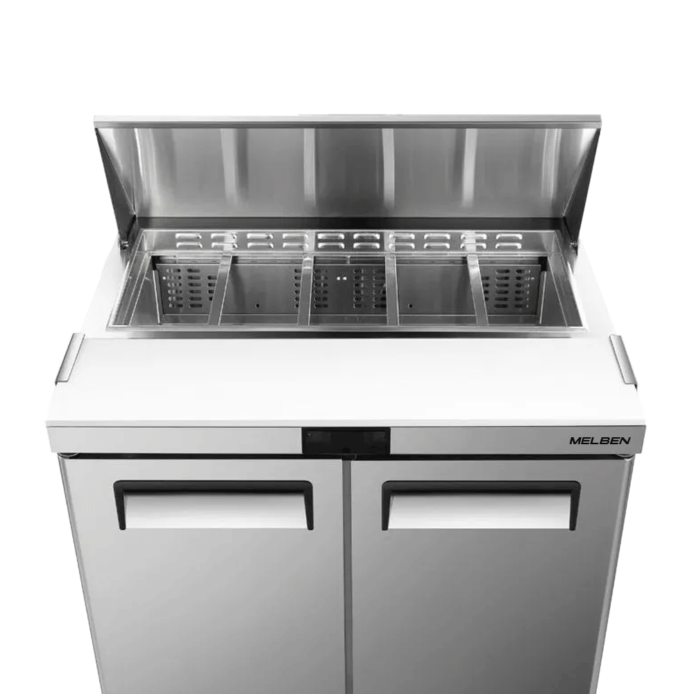 Ideal para restaurantes, cafeterías, food trucks y locales de comida rápida, donde se requiere preparación eficiente y conservación en frío en un solo equipo.
