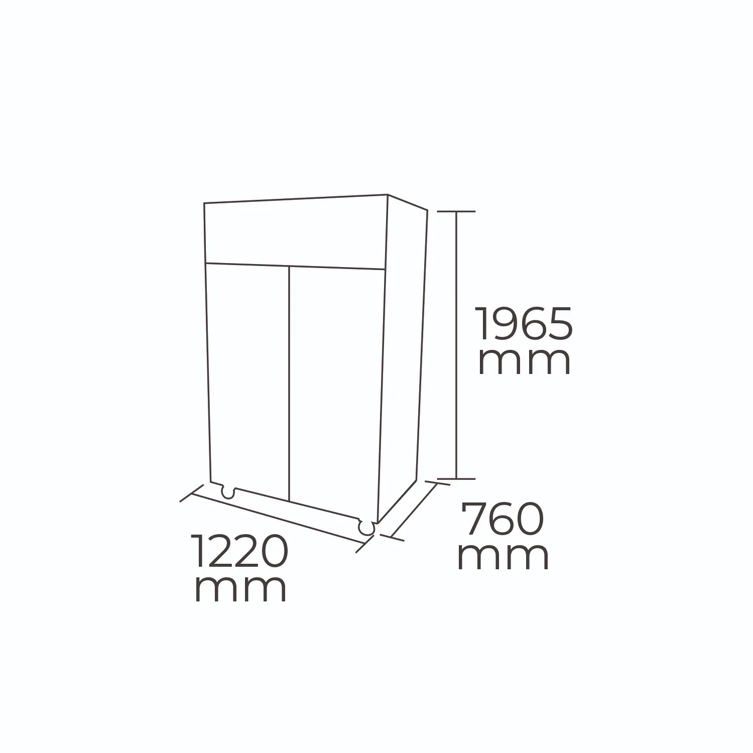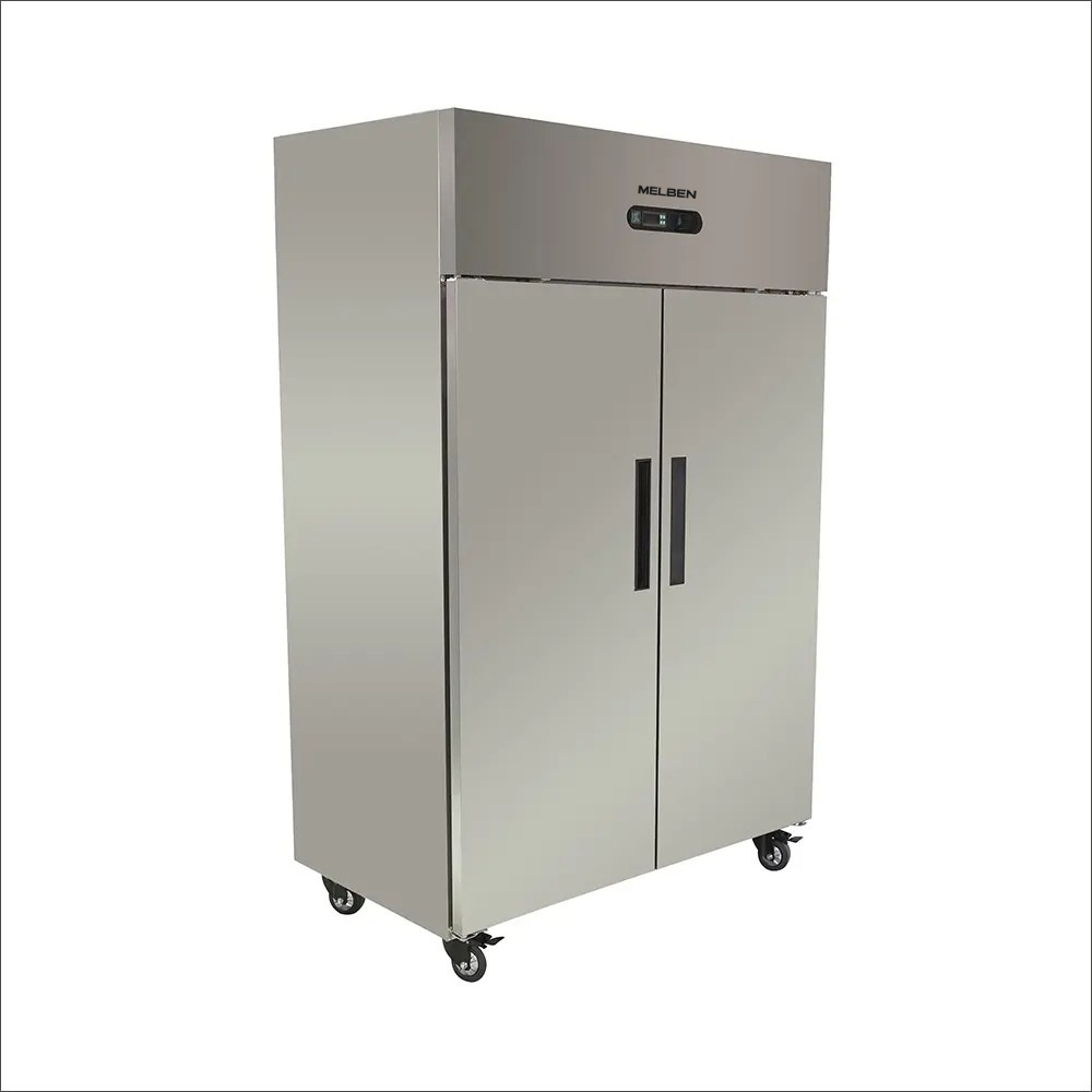 Se debe elegir este modelo porque ofrece durabilidad, eficiencia y practicidad. Está construido en acero inoxidable AISI 304, cuenta con puertas de cierre automático, control electrónico de temperatura y deshielo con visor digital, y un sistema de refrigeración por aire forzado que asegura un enfriamiento uniforme. Además, su evaporación automática del agua de deshielo reduce tareas de mantenimiento y la base con ruedas y frenos facilita la movilidad en entornos profesionales.